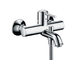 Смеситель для ванны 14140000 Hansgrohe Talis Classic, керамический картридж, крепление рукоятки Boltic, с защитой от обратного тока воды, индивидуальная настройка ограничителя температуры воды, аэратор QuickClean, расход воды 22 л/мин, автоматическое переключение ванна/душ, штихмас 150±16 м, шумопоглощающие эксцентрики.